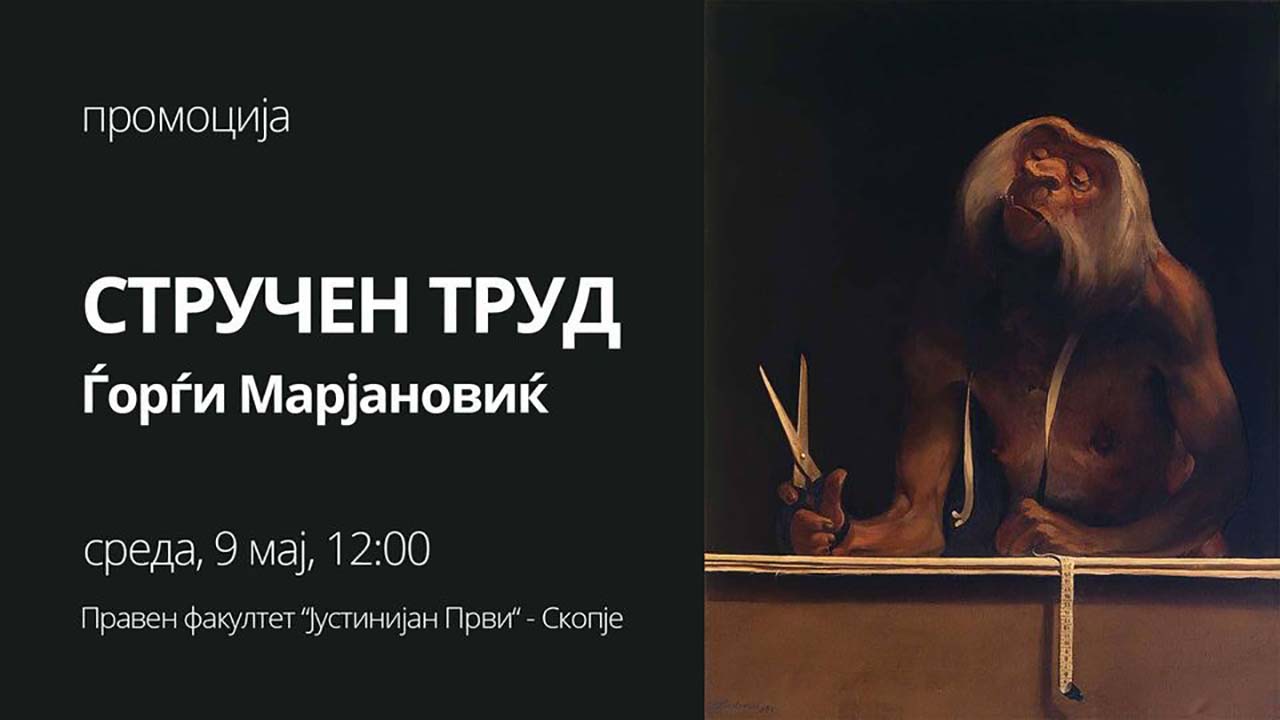 Скопје, 9 мај 2018 – Денес во просториите на Правниот факултет „Јустинијан Први“ – Скопје се одржа промоција на сотијата „Стручен труд“ од проф. д-р Ѓорѓи Марјановиќ.